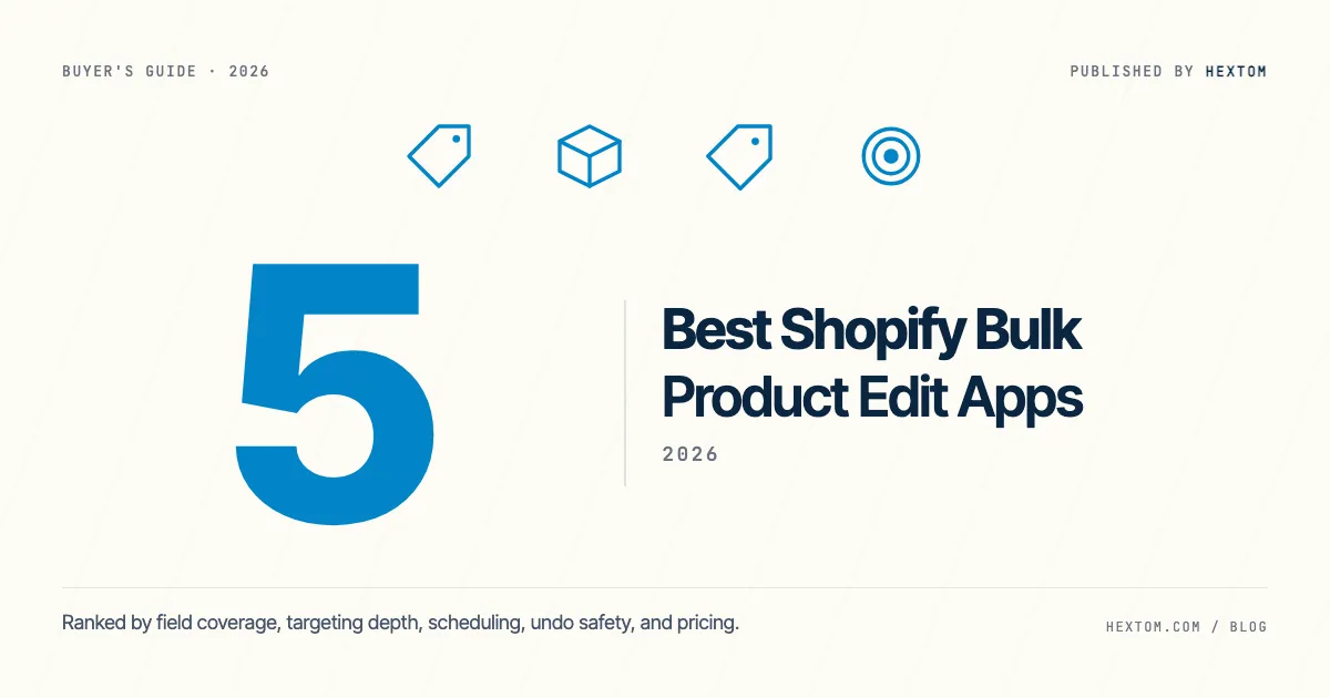 - Do you want one tool for product, collection, inventory, and metafield bulk operations with scheduled tasks and per-task undo? → Hextom Bulk Product Edit.