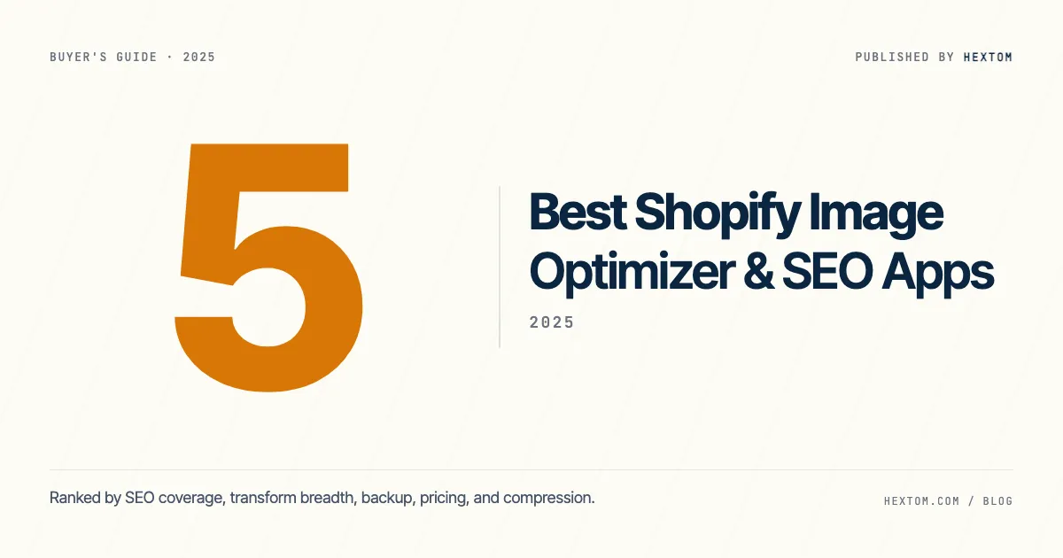 If your Shopify store images are slowing down pages, missing from Google image search, or inconsistent across product pages, you need an image optimizer app — but the right one depends on which problem you have. This guide ranks the five best Shopify image optimizer and image SEO apps for 2025, scores each on five criteria, and ends with a 3-question decision shortcut.